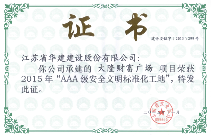 惠州分公司首獲國家級榮譽獎項 時間:2015-11-09 3994 11月6日,惠州分公司總工程師龐文榮參加了在西安召開的中國建筑業(yè)協(xié)會建筑安全分會2015年年會暨理事會,會上表彰了2015年 “AAA級安全文明標(biāo)準(zhǔn)化工地”獲獎單位。惠州分公司總承包施工的大隆財富廣場成為今年惠州市唯一獲此榮譽的項目,這是惠州分公司首次獲得國家級榮譽獎項。