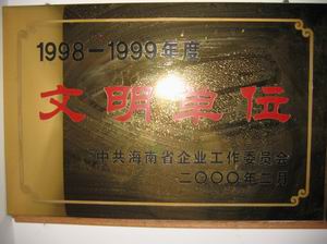 海南省質量信得過企業                   1998-1999年度文明單位