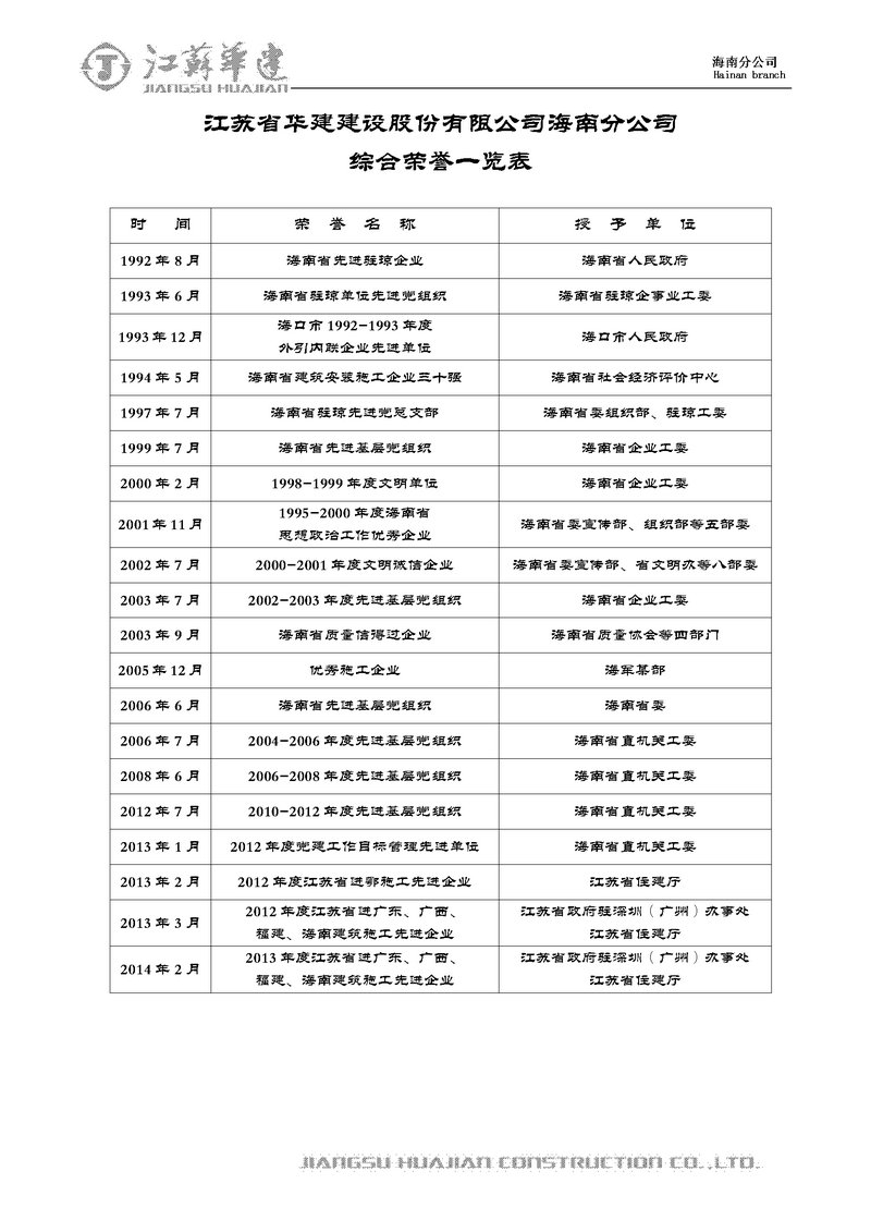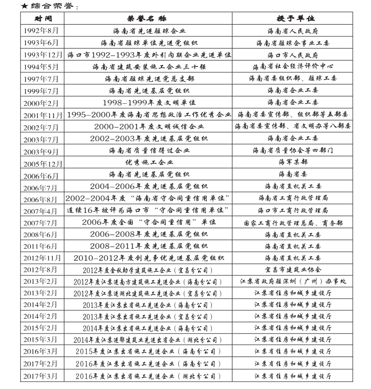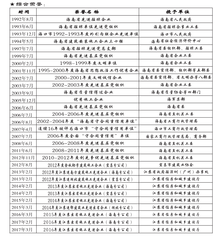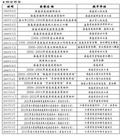 1995-2000海南省思想政治工作優秀企業     2004-2006省直機關先進基層黨組織